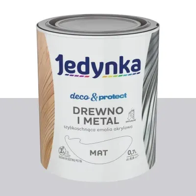 Emalia akrylowa Jedynka Deco&Protect szary jasny mat w pojemności 0,7 l to wodorozcieńczalna farba nawierzchniowa do dekoracyjno-ochronnego malowania drewna i metalu wewnątrz i na zewnątrz budynków. Tworzy trwałą, zmywalną powłokę o matowym wykończeniu, która zapewnia doskonałe krycie podłoża i skutecznie chroni malowane elementy przed codzienną eksploatacją oraz niekorzystnym wpływem zmiennych warunków atmosferycznych.