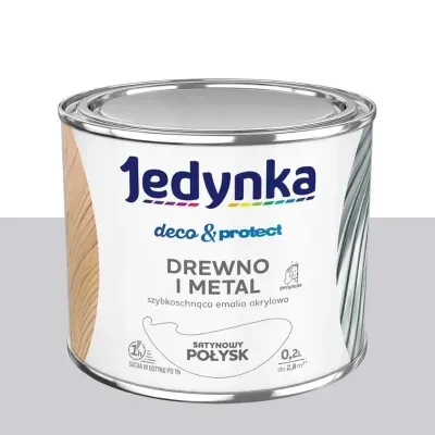 Emalia akrylowa Jedynka Deco&Protect szary jasny o satynowym połysku w pojemności 0,2 l to wodorozcieńczalna farba nawierzchniowa do dekoracyjno-ochronnego malowania drewna i metalu wewnątrz i na zewnątrz budynków. Tworzy trwałą, zmywalną powłokę o delikatnym połysku, która zapewnia dobre krycie podłoża i skutecznie chroni malowane elementy przed codzienną eksploatacją oraz oddziaływaniem warunków atmosferycznych.