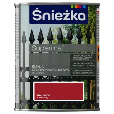 Śnieżka SUPERMAL Emalia chlorokauczukowa przeznaczona jest do dekoracyjno-ochronnego malowania elementów stalowych oraz żeliwnych znajdujących się na zewnątrz pomieszczeń, czyli szczególnie narażonych na działanie czynników atmosferycznych. Należą do nich przede wszystkim: konstrukcje budowlane, balustrady, ogrodzenia, urządzenia mechaniczne itp. Emalia Supermal może być stosowana również do dekoracyjnego malowania podłoży betonowych i tynków cementowo-wapiennych, które nie są narażone na ścieranie.