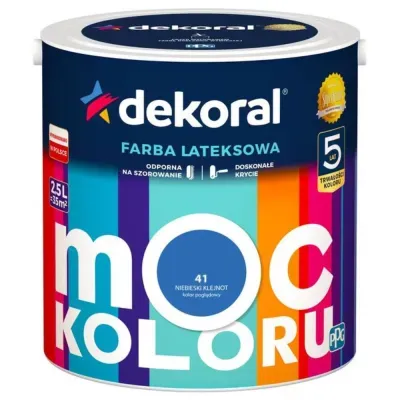 Farba Dekoral Moc Koloru jest farbą matową lateksową, która przeznaczona jest do dekoracyjnego malowania ścian i sufitów. Moc koloru / Akrylit W świetnie się rozprowadza i nie chlapie, posiada także doskonałe krycie oraz wysoką wydajność, co sprawia, że malowanie staje się prawdziwą przyjemnością. Powłoka farby Dekoral jest trwała i odporna na szorowanie, więc kolory nie blakną w czasie jednocześnie zachowując swoje piękno przez wiele lat.