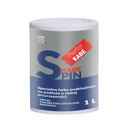 Kabe SPIN 1 l to specjalna farba podkładowa na bazie dyspersji akrylowej, przeznaczona do wykonywania warstwy podkładowej na podłożach o słabej przyczepności, zarówno na zewnątrz, jak i wewnątrz budynków. Produkt znacząco poprawia przyczepność kolejnych powłok malarskich i tynkarskich na trudno zwilżalnych podłożach gładkich, nienasiąkliwych lub o ograniczonej przyczepności, gdzie standardowe grunty nie są wystarczające.