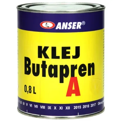 Klej Butapren A 0,8l to wysokogatunkowy, rozpuszczalnikowy klej kontaktowy oparty na bazie kauczuku chloroprenowego i żywic fenolowych. Przeznaczony jest do profesjonalnego i domowego łączenia skór naturalnych i sztucznych, gumy, filcu, tkanin, korka oraz łączenia tych materiałów z drewnem i metalem. Klej szybko schnie, tworzy mocną oraz elastyczną spoinę o wysokiej odporności na działanie wilgoci i zmienne temperatury. Nie zawiera szkodliwego toluenu, nie powoduje przebarwień i nie powoduje pęcznienia materiałów. Dzięki dużej pojemności 0,8l produkt jest ekonomicznym rozwiązaniem dla warsztatów tapicerskich, obuwniczych oraz w codziennych naprawach domowych.