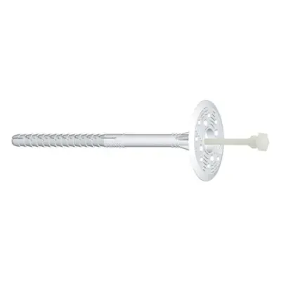 Mocne i trwałe kołki do styropianu 10x200mm z trzpieniem stalowym i długą strefą rozporu. Idealne do montażu płyt izolacyjnych w betonie, cegle i pustakach.