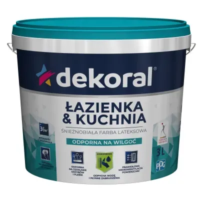 Matowa lateksowa farba emulsyjna ŁAZIENKA & KUCHNIA (Maleinak) przeznaczona jest do malowania ścian i sufitów wewnątrz pomieszczeń, takich jak: łazienki, kuchnie, piwnice, pływalnie, browary, piekarnie, pralnie, itp. szczególnie narażonych na rozwój grzybów pleśniowych oraz na działanie wilgoci. Zastosowanie wysokogatunkowej dyspersji polimerowej wpływa na podwyższoną trwałość mechaniczną powłoki, dzięki czemu jest ona elastyczna, mocna, trwała, odporna na działanie wody a odpowiedni dobór wypełniaczy i środków pomocniczych umożliwia prawidłowe oddychanie ścian. Powłoka jest długotrwale zabezpieczona przed działaniem grzybów.