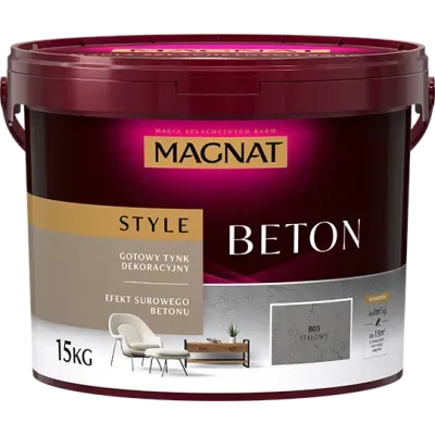 Gotowy tynk dekoracyjny Magnat Style Beton to nie tylko produkt - to inspiracja do kreatywnego podejścia do aranżacji wnętrz. Dostępny w czterech modnych odcieniach, imitujących beton, pozwala uzyskać efekt surowego betonu na ścianie, nadając pomieszczeniom niepowtarzalny charakter.