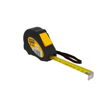 Miara zwijana 5 m x 19 mm 0700-441906 Hardy to solidna taśma miernicza z automatyczną blokadą, przeznaczona do intensywnych prac budowlanych, remontowych i montażowych. Stalowa taśma o długości 5 m i szerokości 19 mm zapewnia dobrą sztywność przy wysuwie, co ułatwia pomiary wykonywane przez jedną osobę. Wytrzymała, plastikowa obudowa o zwartej konstrukcji chroni mechanizm i taśmę przed uszkodzeniami mechanicznymi na budowie. Automatyczna blokada zatrzymuje taśmę po wysunięciu, umożliwiając wygodny odczyt bez konieczności ręcznego przytrzymywania. Miara wyposażona jest w metalowy zaczep do pasa oraz zaczep na końcu taśmy, co ułatwia pracę przy pomiarach krawędzi i elementów konstrukcyjnych.