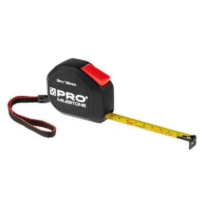 Miara zwijana PRO Milesone o długości 3m to doskonałe narzędzie dla każdego, kto potrzebuje precyzyjnych wymiarów w codziennych zadaniach. Dzięki wysokiej sztywności taśmy, miara oferuje długi wysięg bez podparcia, co czyni ją idealną do większych projektów budowlanych. Ergonomiczna kaseta z gumowym pokryciem oraz nowoczesny hamulec zapadkowy zapewniają wygodę użytkowania.