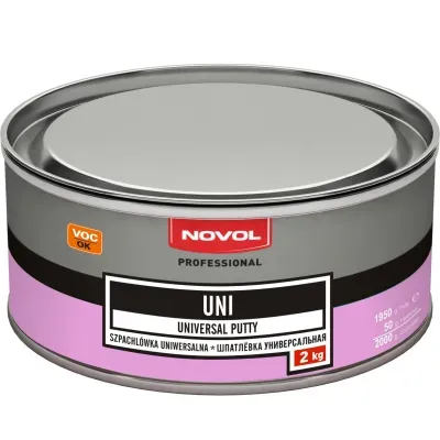 Szpachlówka uniwersalna Novol to podstawowa szpachlówka wypełniająca. Zalecana jest głównie do obróbki mechanicznej i niezbyt dużych powierzchni. Szpachlówka uniwersalna jest stosunkowo twarda oraz o niewielkiej elastyczności. Posiada dobrą przyczepność do stali węglowej i aluminium.