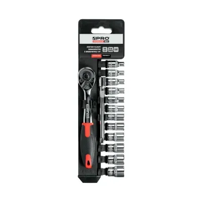 PRO Zestaw kluczy nasadowych z grzechotką 1/4" to wszechstronny zestaw składający się z 14 elementów, idealny dla każdego profesjonalisty i majsterkowicza. Klucze wykonane z wytrzymałej stali chromowo-wanadowej CrV 50BV30 zapewniają długotrwałą wytrzymałość i odporność na uszkodzenia. Grzechotka wyposażona jest w precyzyjny mechanizm zapadkowy z 72 zębami, co umożliwia pracę w ciasnych przestrzeniach dzięki kątowi roboczemu wynoszącemu 5°.