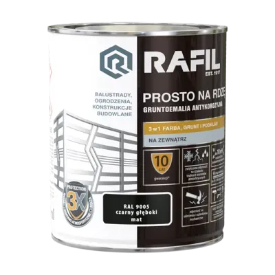 Rafil Prosto na Rdzę to specjalistyczny produkt, który stanowi idealne rozwiązanie dla osób, które zmagają się z problemem korozji na powierzchniach stalowych i żeliwnych. Ta innowacyjna gruntoemalia 3w1 została opracowana z myślą o skutecznym malowaniu powierzchni, jednocześnie zapewniając trwałą ochronę przed szkodliwymi warunkami atmosferycznymi. Dzięki doskonałej przyczepności i jakości krycia, RAFIL PROSTO NA RDZĘ umożliwia uzyskanie trwałych i estetycznych wyników malowania. Produkt tworzy wyjątkowo trwałą i elastyczną powłokę, co minimalizuje potrzebę częstego malowania oraz skutecznie chroni powierzchnie metalowe przed korozją.