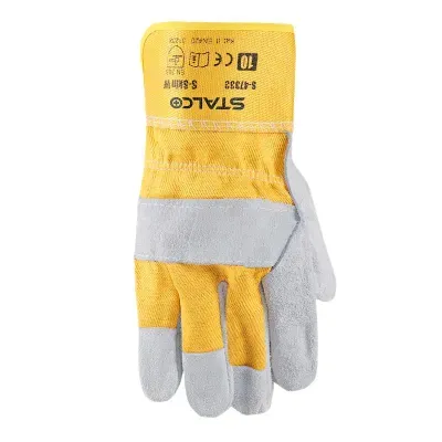 Rękawice skórzane S-SKIN W roz. 10 Stalco S-47333 to wytrzymałe ochronniki dłoni, idealne do ciężkich prac w przemyśle, transporcie i podczas remontów. Wykonane z dwoiny bydlęcej z dodatkiem bawełny, zapewniają doskonałą ochronę przed skaleczeniami i wysoką temperaturą.