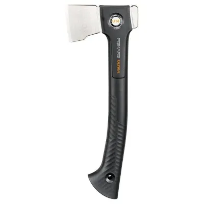 Siekiera ciesielska Fiskars Ultra U14 (model 1082130) to kompaktowy, lekki toporek uniwersalny zaprojektowany do precyzyjnych prac ciesielskich, ogrodowych oraz terenowych. Łączy ostrą, hartowaną głowicę ze stali węglowej z wytrzymałym, kompozytowym trzonkiem FiberComp™, dzięki czemu jest odporna na pęknięcia, doskonale wyważona i wygodna w pracy jedną ręką. Niewielka waga i ergonomiczny, antypoślizgowy uchwyt zapewniają pewny chwyt i kontrolę nad cięciem, co sprawdza się zarówno przy obróbce drewna konstrukcyjnego, jak i przy drobnych pracach wokół domu czy na biwaku.