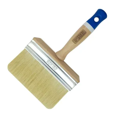 Pędzel tapetowy Spenser cechuje się także skuwkami z blachy nierdzewnej niklowanej, które są łatwe do czyszczenia i nie powodują trudno usuwalnych rdzawych zabrudzeń. Włosie naturalne, starannie selekcjonowane i gotowane, staje się bardziej elastyczne i chropowate, co pozwala na lepsze przyleganie kleju do pędzla. Ergonomiczny kształt trzonków wykonanych z drewna bukowego gwarantuje wygodne i pewne chwycenie pędzla, co wpływa na większą precyzję i kontrolę podczas pracy.