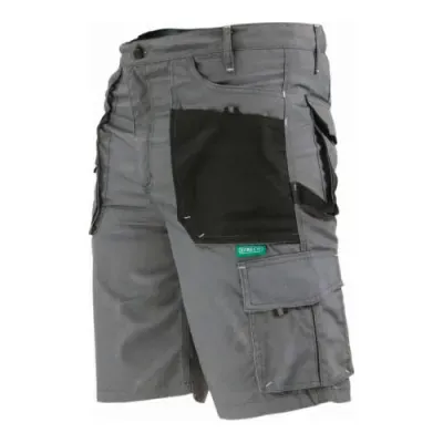 Spodnie robocze - szorty: - CE kategoria I - 65% poliester, 35% bawełna - gramatura materiału: 267g/m2 - duże, wzmacniane kieszenie - potrójne szwy - osobna kieszeń na telefon - uchwyt na młotek - ucho na klucze - elementy odblaskowe