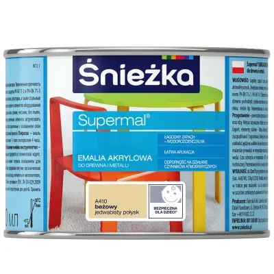 SUPERMAL® Emalia akrylowa przeznaczona jest do dekoracyjno-ochronnego malowania drewna, materiałów drewnopochodnych, tynków oraz elementów stalowych i żeliwnych użytkowanych wewnątrz i na zewnątrz pomieszczeń, takich jak: drzwi, okna, meble itp. Rekomendowana jest do malowania zabawek i elementów wyposażenia placów zabaw.