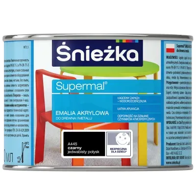 SUPERMAL® Emalia akrylowa przeznaczona jest do dekoracyjno-ochronnego malowania drewna, materiałów drewnopochodnych, tynków oraz elementów stalowych i żeliwnych użytkowanych wewnątrz i na zewnątrz pomieszczeń, takich jak: drzwi, okna, meble itp. Rekomendowana jest do malowania zabawek i elementów wyposażenia placów zabaw.