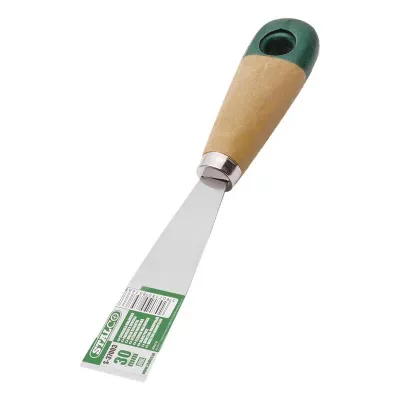 Szpachla malarska Stalco S-37003 to precyzyjne narzędzie idealne dla prac wymagających szczegółowości i dokładności. Wykonana jest z giętkiej stali nierdzewnej, co zapewnia jej elastyczność i odporność na korozję w trudnych warunkach. Szpachla posiada polerowane ostrze, które zwiększa jej wytrzymałość na uszkodzenia mechaniczne i nadaje estetyczny wygląd. Uchwyt drewniany, pokryty lakierem, jest odporny na wilgoć i zabrudzenia, co ułatwia utrzymanie czystości i przedłuża jego żywotność.