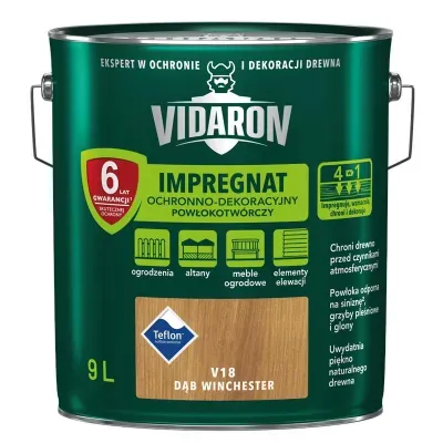 VIDARON IMPREGNAT POWŁOKOTWÓRCZY jest przeznaczony do malowania przede wszystkim surowego drewna, altan, drewnianych mebli ogrodowych, a także wszelkich drewnianych powierzchni gładkich czy szorstkich. Stanowi skuteczne zabezpiecznie przed działaniem szkodliwych czynników biologicznych, trudnych warunków atmosferycznych i wilgoci. Można go stosować na zewnątrz, ale również wewnątrz pomieszczeń. Można nim malować elementy stolarki budowlanej, drewniane okładziny budynków, płotów, altan i architektury ogrodowej. Zapewnia on pełną ochronę drewna na długi czas, jeśli dodatkowo połączysz go z bezbarwnym Impregnatem Ochronnym VIDARON zapewnia pełną ochronę drewna.