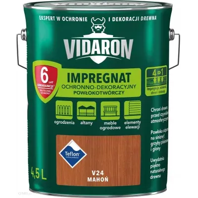 VIDARON IMPREGNAT POWŁOKOTWÓRCZY jest przeznaczony do malowania drewna surowego, fasad drewnianych, altan, mebli ogrodowych, a także wszelkich drewnianych powierzchni gładkich jak i szorstkich, aby zabezpieczyć je przed działaniem szkodliwych czynników biologicznych, a także warunkami atmosferycznymi i wilgocią. Można go stosować na zewnątrz oraz wewnątrz. Sprawdzi się do malowania elementów stolarki budowlanej , drewnianych okładzin budynków, płotów i altan czy architektury ogrodowej. Zapewni pełną ochronę drewna na długi czas, jeśli połączysz go z bezbarwnym Impregnatem Ochronnym VIDARON zapewnia pełną ochronę drewna.