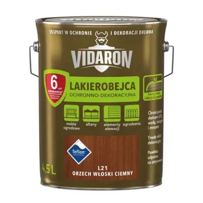 Wysokiej jakości Lakierobejca Ochronno-Dekoracyjna Vidaron tworzy na drewnie trwałą i elastyczną powłokę odporną na ścieranie. Lakierobejca skutecznie zabezpiecza drewno przed działaniem słońca (UV),wody, śniegu i mrozu jednocześnie zachowując naturalny rysunek słojów drewna.
