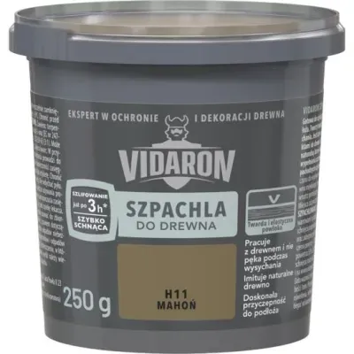 Vidaron Szpachla do drewna w kolorze mahoń w wiaderku o pojemności 250g to wysokiej jakości gotowy produkt przeznaczony do wyrównywania ubytków, szczelin oraz niewielkich nierówności na powierzchniach drewnianych i drewnopochodnych. Dzięki swojej akrylowej formule szpachla charakteryzuje się doskonałą przyczepnością do podłoża, elastycznością oraz odpornością na pękanie podczas wysychania. Produkt jest łatwy w aplikacji, szlifowaniu i polerowaniu, a jego barwa idealnie imituje naturalny wygląd drewna.